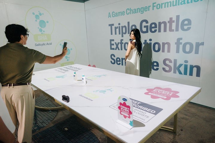 The launch event, held at Electric Garden, showcased a sensorial and informational experience, giving guests the chance to feel the difference between rough and bumpy vs. soft and smooth skin through hands-on stations and sensorial activations. One of the most popular zones allowed attendees to compare various salicylic acid-based formulations, giving a clear understanding of how Cetaphil’s gentle exfoliation stands out in both performance and tolerability.