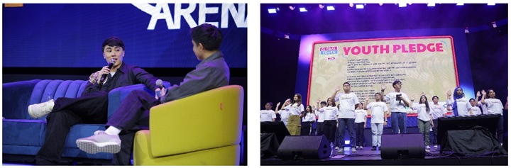 (Right photo) Youth take the pledge at GYS 2025, reaffirming their commitment to lead with purpose, uphold sustainability, and shape a better future for all.
