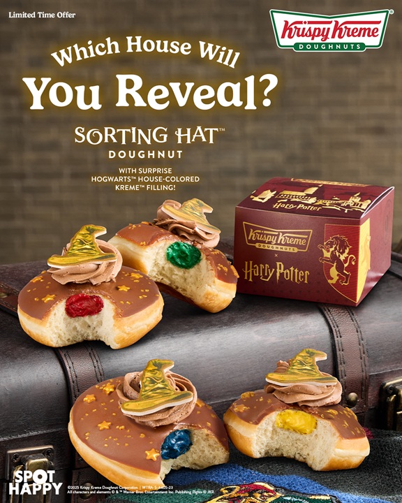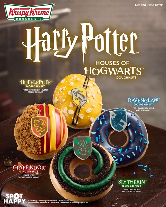Now available for a limited time only, doughnut lovers and Harry Potter™ fans alike can head to participating Krispy Kreme shops across the world to experience enchanting doughnuts that bring the four Hogwarts™ houses to life through delicious flavors: