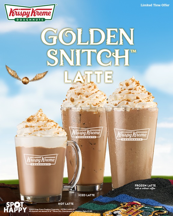 Accompanying the doughnuts is the new Golden Snitch™ Latte, a rich golden caramel toffee-inspired latte, topped with whipped cream, Biscoff® cookie crumble, and a sprinkle of golden shimmer sugar. It’s a spellbinding, indulgent treat in every sip.