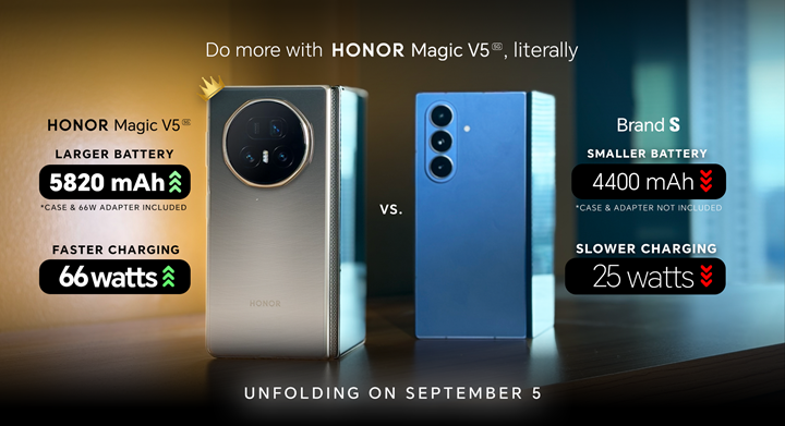 Leading smart devices provider HONOR Philippines is gearing up for the arrival of its newest and thinnest foldable phone – the HONOR Magic V5! Coming this September 5, HONOR Magic V5 sports the biggest battery out of all its counterparts in the market to date.