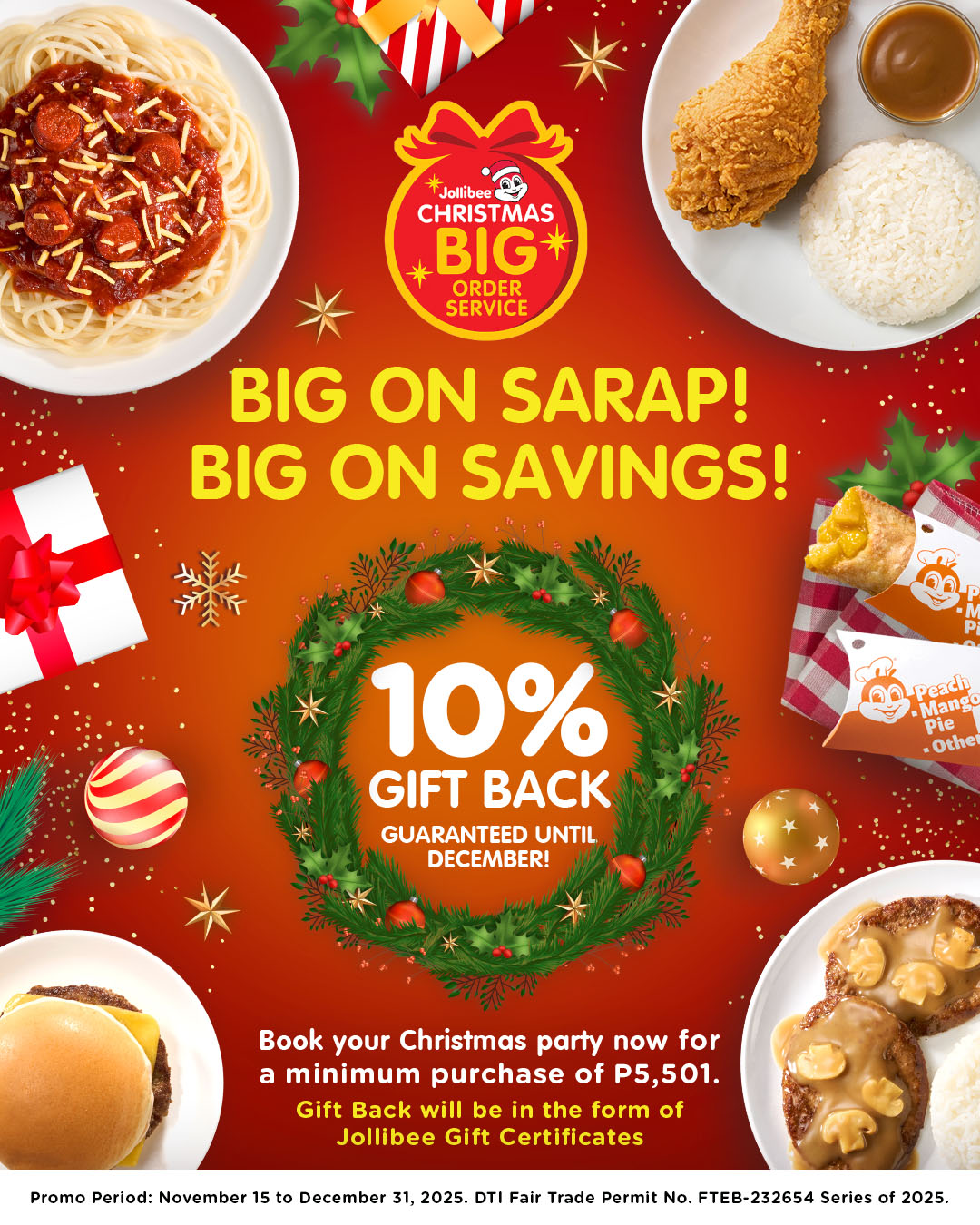 “This Christmas, Jollibee wants to remind every Filipino that the true joy of the season comes from being together. No matter where or how we celebrate, what really matters is celebrating with the people we love,” said Dorothy Ching, Jollibee Philippines’ vice president for marketing. “Totoong mas buo ang saya ng Pasko kapag magkakasama tayo at pinagsasaluhan ang mga paborito nating mga pagkain.”