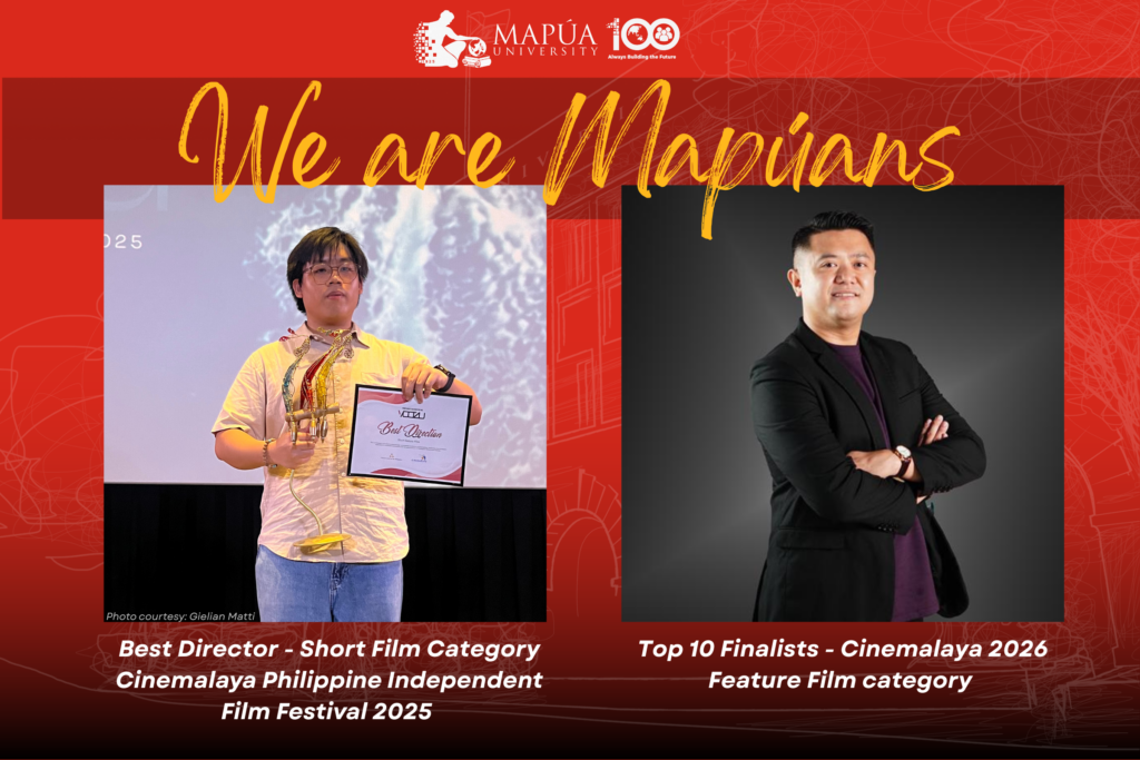 Two Mapúa University filmmakers received prestigious awards at the Cinemalaya Philippine Independent Film Festival 2025 held on October 12, 2025, at Shangri-la Plaza Cinema in Mandaluyong. Organized by the Cinemalaya Foundation and Cultural Center of the Philippines, the annual competition recognizes and supports promising filmmakers by recognizing their creative works and awarding seed grants to help them create their cinematic masterpieces.