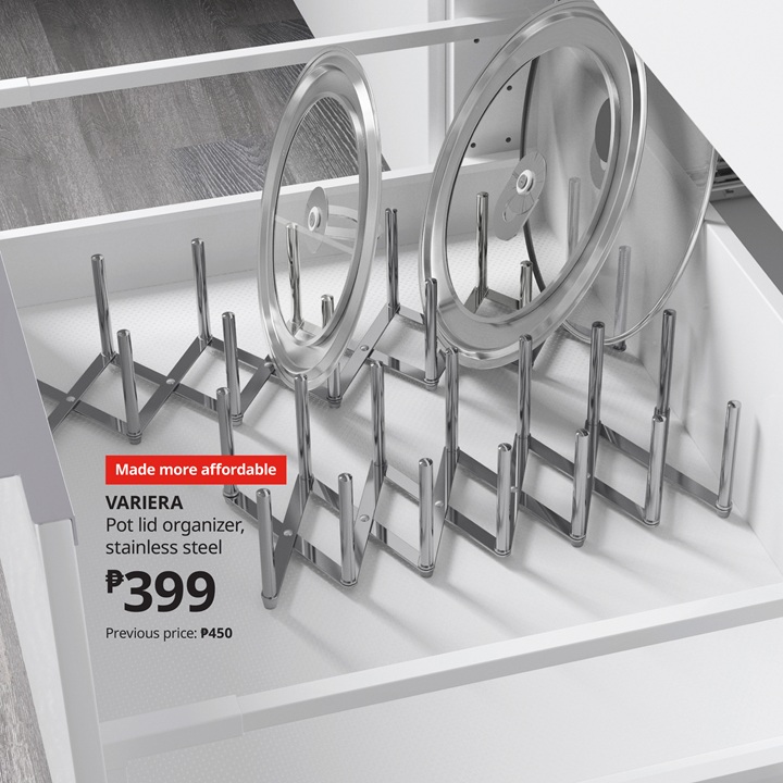 August is often seen as a slower month before the “ber” months rush in with the parties, family visits, holiday hustle, and travels. We can all agree that Christmas in the Philippines is fun—but also a total chaos. Why not prep your home (and yourself) before it all begins? IKEA’s pricedown makes it fun and easy to get your space ready for both everyday living and festive celebrations. The kitchen is the busiest room during the holidays as well, so as early as now declutter the drawers with the Variera pot lid organizer in stainless steel (price reduced by 10%, P399 from P450); and get your powder room ready for guests with the Hornavan trolley (20% price reduction, P699 from P890).