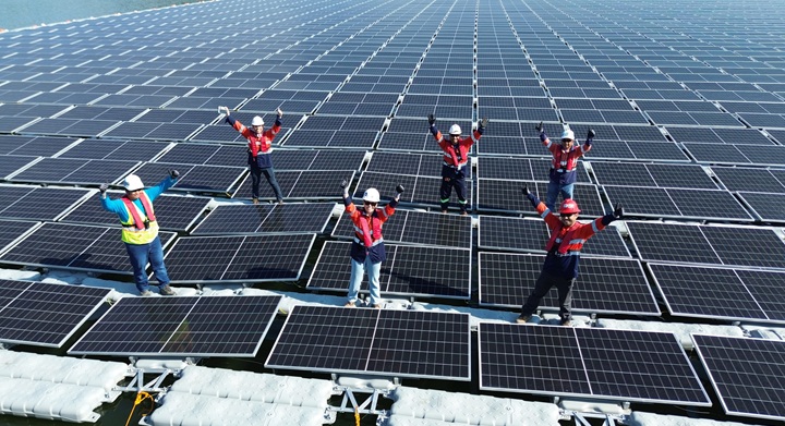 panels on buoyant structures, a testament to innovative space utilization without repurposing possible agricultural