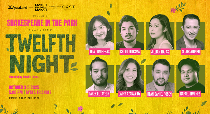Ayala Land and Make It Makati, in partnership with CAST (Company of Actors in Streamlined Theatre), proudly present Shakespeare in the Park featuring Twelfth Night at Ayala Triangle right in the middle of Ayala Avenue in Makati.
