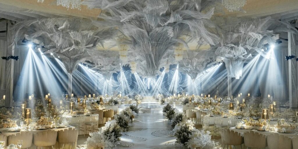The program highlights four celebration formats—weddings, debuts, golden anniversaries, and Tinghun—woven into a continuous, visually rich showcase. Each segment features couture runway moments, interpretive performances, and thematic transformations of the Grand Ballroom.