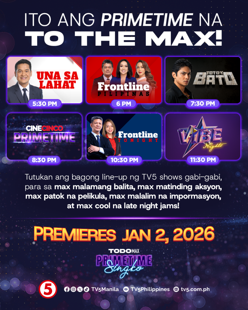 Alongside these shows, TV5 strengthens its TodoMax Primetime Singko starting January 2.
