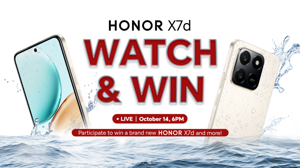Leading global smart devices provider HONOR Philippines is all set for the arrival of its newest viral smartphone HONOR X7d! In anticipation of the launch, it entices HONOR fans to watch its launch live on Facebook on October 14, 6PM to win a brand-new HONOR X7d: https://bit.ly/X7dLaunch_FB.