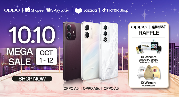 Get ready, shoppers! OPPO’s 10.10 Mega Sale is here until October 12, offering a chance to take home exclusive Mobile Legends: Bang Bang prizes, massive discounts, exclusive vouchers, and exciting freebies across its official e-commerce platforms in Shopee, Lazada, and TikTok Shop
