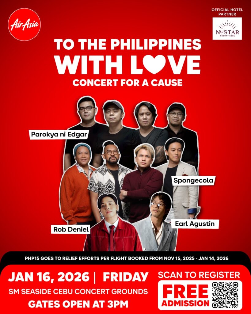 AirAsia Philippines will also give updates on its efforts to support communities in Cebu that were affected by the recent calamities.. Since November 2025, AirAsia allots ₱15 from every flight booked to typhoon and earthquake relief efforts in Cebu. The total donation to be revealed at the concert.