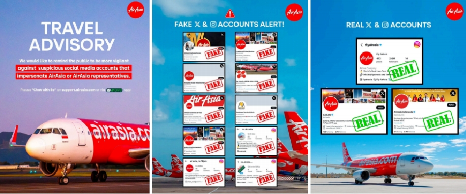 AirAsia strongly advises the public to avoid contacting customer service numbers found on unverified sources, to be cautious of any links received via WhatsApp or other messaging platforms and to refrain from sharing personal information, booking references or payment details with parties whose identity cannot be confirmed.