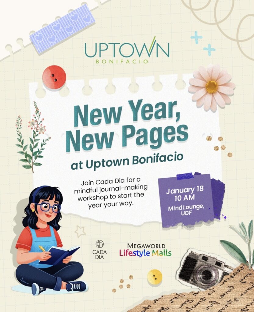 Uptown Bonifacio continues to foster meaningful community experiences as it brings “New Year, New Pages,” a relaxing journal personalization session in partnership with Cada Dia on January 18, 10 AM, at the Mind Lounge, Ground Floor of Uptown Mall.